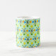 This mug is covered with a mid-century modern design of atomic starbursts on a green background.