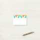 This Post-It notepad has a mid-century modern design of long ovals in yellow, orange, green, and turquoise with black lines with circles on the ends.
