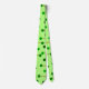 This tie has a mid-century modern design of black vertical lines with brown vertical lines and green circles.