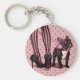 French Bouledogue on a leash and young woman in needle heels. Illustration vintage style thumbnail with a pink-dotted background, by artist Maryline Cazenave.