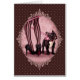 French bulldog leaves some and young woman in stiletto heels. Illustration label style vintage on pink bottom with pea, carried out by the artist Maryline Cazenave.