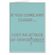 It may not be the exact letter of the rule...but it lets people know to keep their distance...in the gamer way! Add a bit of humour to your life by warning people you get an attack of opportunity if they approach!