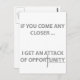 It may not be the exact letter of the rule...but it lets people know to keep their distance...in the gamer way! Add a bit of humour to your life by warning people you get an attack of opportunity if they approach!