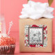 Square sticker to match our "Attack of the Cards 1" invitation with a vintage black and white Alice in Wonderland image of Alice and the Cards with a black and white chequerboard frame on a background of playing cards on red. See matching invitation, envelope, favour box, square favour tag, gift bags and wrapping paper. See the entire Wonderland Sticker collection in the INVITES | Stickers & Labels section.