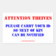 ATTENTION THIEVES RECTANGULAR STICKER