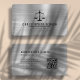 Present a professional image with this minimalist black and silver business card featuring rounded corners. The silver faux brushed metal background contrasts with the black justice scales logo and the black text to highlight your name, contact information and other details. A QR code on the back takes clients to your website.
