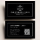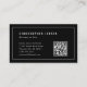 Present a professional image with this simple, minimalist black and white business card. The black background contrasts with the white justice scales logo and the white text to highlight your name, contact information and other details. A thin white border provides a classic professional element. A QR code on the back takes clients to your website.