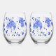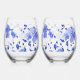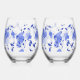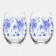 Attractive Blue Floral Print Stemless Wine Glass Set