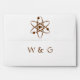 Bring touch of geeky, science-themed fun to your event with custom envelopes featuring a deep chocolate planetary model atom on the front in the bottom right corner, a matching atom on the back flap, and initials that you can change to match your own on the back underneath. A final note of decoration can be found on the inside with a rich brown interior decorated with a pattern of planetary model atoms, beakers, DNA strands, and test tubes adorning the envelope just under the flap where the design will add a nice accent as your guests retrieve their invitation. Be sure to check out the full Attractive Forces in Chocolate collection to find more products, including invitations, guest books, return address labels, and even favour boxes, with matching designs that will allow for a truly coordinated wedding or special event.