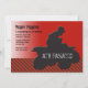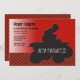 A sporty ATV invitation featuring the silhouette image of an ATV and ridder against a gradient red background and a jazzy black and red pattern road surface. The card is easy to customise with your wording, font, font colour and choice of six paper types.