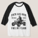 A gritty, grunge-style graphic of an ATV quad, featuring the bold slogan 'Rock and Mud Fuel My Blood – ATV Quad Squad.' The design is in a single color with a distressed, worn-out look for extra attitude.