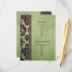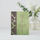 This wedding design delicately balances simplicity with complexity, a contemporary design inspired by old-fashioned floral damask. A striking and exotic damask border, reminiscent of lace, curls and sweeps in dappled, shimmering shades of aubergine purple up to a diamond-studded edge. Beyond this, against a softly textured, flecked and speckled, subtle olive green background, the brunch invitation wording will make a bold statement, alternating between timeless all caps and classy touches of script, in deep brown.