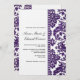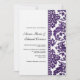 The combination of minimalist text and background with an intricate, shimmering, deep aubergine purple damask border sets this wedding design apart. The striking floral damask sweeps and curls lavishly up to a diamond-studded edge, beyond which is the wedding invitation wording - completely customisable by you.
