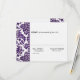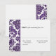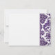 The combination of minimalist text and background with an intricate, shimmering deep aubergine purple damask border sets this wedding design apart. The striking floral damask sweeps and curls lavishly up to a diamond-studded edge, beyond which is the rsvp wording - completely customisable by you.