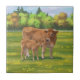 Aubrac Cow & Cute Calf in Spring Pasture Ceramic Tile