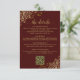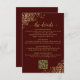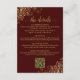 This beautiful enclosure card is designed to provide your guests with additional information on the reception, accommodations, travel arrangements, registry, website, directions, RSVP, or any other specifics that your guests might require. Features a simple yet elegant design with a lacy script title, and frilly gold faux foil curls and swirls in the corners on an auburn brown coloured background. The design includes a customisable QR code to make it easy for your guests to access your online website.