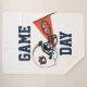 This cosy blanket proudly showcases support for Auburn University on game day! It features a classic football helmet with the iconic blue "AU" logo, centred between the words "GAME" and "DAY" in bold blue lettering. A vibrant orange pennant extends from behind the helmet, proudly displaying a stylised tiger mascot face and the word "TIGERS." This impactful and recognisable design is ideal for staying warm while cheering on the Auburn Tigers, whether at home or at the stadium.