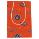 This design pattern features Auburn University's emblematic "AU" logo in bold navy blue with an orange outline. The word "Auburn" appears in stylised, uppercase navy blue letters with orange accents, providing a prominent contrast against the white background. An additional graphic of a tiger's eyes, enclosed in an oval shape with an orange border, reinforces Auburn’s iconic mascot. Scattered across the design are minimalist starburst shapes and small dots in navy blue, adding a festive and dynamic touch that complements the university's spirit and colours.