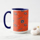 This design pattern features Auburn University's emblematic "AU" logo in bold navy blue with an orange outline. The word "Auburn" appears in stylised, uppercase navy blue letters with orange accents, providing a prominent contrast against the white background. An additional graphic of a tiger's eyes, enclosed in an oval shape with an orange border, reinforces Auburn’s iconic mascot. Scattered across the design are minimalist starburst shapes and small dots in navy blue, adding a festive and dynamic touch that complements the university's spirit and colours.
