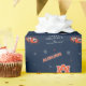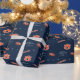 This design pattern features Auburn University's emblematic "AU" logo in bold navy blue with an orange outline. The word "Auburn" appears in stylised, uppercase navy blue letters with orange accents, providing a prominent contrast against the white background. An additional graphic of a tiger's eyes, enclosed in an oval shape with an orange border, reinforces Auburn’s iconic mascot. Scattered across the design are minimalist starburst shapes and small dots in navy blue, adding a festive and dynamic touch that complements the university's spirit and colours.