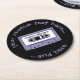Lilac vintage audio cassette tape. Vector icon with customisable colours. Custom background colour. Two custom text fields on circle amd one on tape label.
