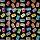 Colourful audio cassettes seamless pattern. Custom background colour.