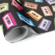 Colourful audio cassettes seamless pattern. Custom background colour.
