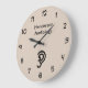 Modern Audiology Office waiting room wall decor clock with image of an ear and canal graphic and name space you can customise with the name of your hearing c enter company or Audiologist.
