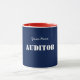 A neat mug for the neat Auditor (fully customisable - use the Customise button to change fonts' type, size and colour and also the background colour)