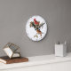Audubon Cardinal Pair in Wild Almond Tree Round Clock