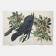 The "Raven" illustration by John James Audubon is a magnificent representation of one of North America's most iconic birds. Part of his celebrated "Birds of America" series, this artwork was published in the early 1800s and showcases the raven in all its glory. With its sleek black feathers, powerful build, and intelligent expression, the raven is depicted perched on a branch, its dark form starkly contrasting with the surrounding foliage. Audubon’s intricate attention to detail captures the raven's majestic presence, highlighting its size and unique features, making this illustration a timeless example of natural history art.