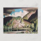 Alfred Joseph Casson was a member of the Canadian group of artists known as the “Algonquin Group”or “The Group of Seven”. He painted with clear colours and a limited palette, choosing a simplified style with the landscapes of southern Ontario as his subject. This painting is called “August Algonquin Park”.A serene landscape features rolling hills covered in lush green trees, reflected in a tranquil body of water below. Dramatic clouds hover in the sky, casting contrasting shadows over the scene.