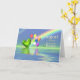 Greeting card for August birthdays with my artwork of a peridot heart and balloons on water, and a rainbow.