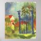Gartentor. 1914. Watercolor. He lived during a particularly innovative time for German art which saw the development of the main German Expressionist movements as well as the arrival of the successive avant-garde movements which were forming in the rest of Europe. Like a true artist of his time, Macke knew how to integrate into his painting the elements of the avant-garde which most interested him. August Macke was born in Meschede, Germany. His father, August Friedrich Hermann Macke (1845-1904), was a building contractor and his mother, Maria Florentine, née Adolph, (1848-1922), came from a farming family in Germany's Sauerland region. The family lived at Brüsseler Straße until August was 13. He then lived most of his creative life in Bonn, with the exception of a few periods spent at Lake Thun in Switzerland and various trips to Paris, Italy, Holland and Tunisia. In Paris, where he travelled for the first time in 1907, Macke saw the work of the Impressionists, and shortly after he went to Berlin and spent a few months in Lovis Corinth's studio. His style was formed within the mode of French Impressionism and Post-impressionism and later went through a Fauve period. In 1909 he married Elisabeth Gerhardt. In 1910, through his friendship with Franz Marc, Macke met Kandinsky and for a while shared the non-objective aesthetic and the mystical and symbolic interests of Der Blaue Reiter. Macke's meeting with Robert Delaunay in Paris in 1912 was to be a sort of revelation for him. Delaunay's chromatic Cubism, which Apollinaire had called Orphism, influenced Macke's art from that point onwards. His Shops Windows can be considered a personal interpretation of Delaunay's Windows, combined with the simultaneity of images found in Italian Futurism. The exotic atmosphere of Tunisia, where Macke travelled in 1914 with Paul Klee and Louis Moilliet was fundamental for the creation of the luminist approach of his final period, during which he produced a series of works now considered masterpieces. August Macke's oeuvre can be considered as Expressionism (the movement that flourished in Germany between 1905 and 1925), and also as part of Fauvism. The paintings concentrate primarily on expressing feelings and moods rather than reproducing objective reality, usually distorting colour and form. Macke's career was cut short by his early death at the front in Champagne in September 1914, the second month of World War I. His final painting, Farewell, depicts the mood of gloom that settled after the outbreak of war. Expressionism was a cultural movement, initially in poetry and painting, originating in Germany at the start of the 20th-century. Its typical trait is to present the world under an utterly subjective perspective, violently distorting it to obtain an emotional effect and vividly transmit personal moods and ideas. Expressionist artists sought to express the meaning of "being alive" and emotional experience rather than physical reality. Expressionism emerged as an 'avant-garde movement' in poetry and painting before the first World War; in the Weimar years was being appreciated by a mass audience, having its popularity peak in Berlin, during the 1920s. Expressionism is exhibited in many art forms, including: painting, literature, theatre, film, architecture and music. The term often implies emotional angst. In a general sense, painters such as Matthias Grünewald and El Greco can be called expressionist, though in practice, the term is applied mainly to 20th century works. The Expressionist stress on the individual perspective was also a reaction to positivism and other artistic movements such as naturalism and impressionism. Der Blaue Reiter (The Blue Rider) was a group of artists from the Neue Künstlervereinigung München in Munich, Germany. Der Blaue Reiter was a German movement lasting from 1911 to 1914, fundamental to Expressionism, along with Die Brücke which was founded the previous decade in 1905. Les Fauves (French for The Wild Beasts) were a short-lived and loose grouping of early 20th century Modern artists whose works emphasized painterly qualities and strong colour over the representational or realistic values retained by Impressionism. While Fauvism as a style began around 1900 and continued beyond 1910, the movement as such lasted only three years, 1905–1907, and had three exhibitions. The leaders of the movement were Henri Matisse and André Derain. Painting is a mode of expression and the forms are numerous. Drawing, composition or abstraction and other aesthetics may serve to manifest the expressive and conceptual intention of the practitioner. Paintings can be naturalistic and representational (as in a still life or landscape painting), photographic, abstract, be loaded with narrative content, symbolism, emotion or be political in nature. Painting is the practice of applying paint, pigment, colour or other medium to a surface (support base). In art, the term describes both the act and the result, which is called a painting. Paintings may have for their support such surfaces as walls, paper, canvas, wood, glass, lacquer, clay or concrete. Paintings may be decorated with gold leaf, and some modern paintings incorporate other materials including sand, clay, and scraps of paper. A portion of the history of painting in both Eastern and Western art is dominated by spiritual motifs and ideas; examples of this kind of painting range from artwork depicting mythological figures on pottery to Biblical scenes rendered on the interior walls and ceiling of The Sistine Chapel, to scenes from the life of Buddha or other scenes of eastern religious origin. Among the continuing and current directions in painting at the beginning of the 21st century are Monochrome painting, Hard-edge painting, Geometric abstraction, Appropriation, Hyperrealism, Photorealism, Expressionism, Minimalism, Lyrical Abstraction, Pop Art, Op Art, Abstract Expressionism, Colour Field painting, Neo-expressionism, Collage,