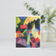 He lived during a particularly innovative time for German art which saw the development of the main German Expressionist movements as well as the arrival of the successive avant-garde movements which were forming in the rest of Europe. Like a true artist of his time, Macke knew how to integrate into his painting the elements of the avant-garde which most interested him. August Macke was born in Meschede, Germany. His father, August Friedrich Hermann Macke (1845-1904), was a building contractor and his mother, Maria Florentine, née Adolph, (1848-1922), came from a farming family in Germany's Sauerland region. The family lived at Brüsseler Straße until August was 13. He then lived most of his creative life in Bonn, with the exception of a few periods spent at Lake Thun in Switzerland and various trips to Paris, Italy, Holland and Tunisia. In Paris, where he travelled for the first time in 1907, Macke saw the work of the Impressionists, and shortly after he went to Berlin and spent a few months in Lovis Corinth's studio. His style was formed within the mode of French Impressionism and Post-impressionism and later went through a Fauve period. In 1909 he married Elisabeth Gerhardt. In 1910, through his friendship with Franz Marc, Macke met Kandinsky and for a while shared the non-objective aesthetic and the mystical and symbolic interests of Der Blaue Reiter. Macke's meeting with Robert Delaunay in Paris in 1912 was to be a sort of revelation for him. Delaunay's chromatic Cubism, which Apollinaire had called Orphism, influenced Macke's art from that point onwards. His Shops Windows can be considered a personal interpretation of Delaunay's Windows, combined with the simultaneity of images found in Italian Futurism. The exotic atmosphere of Tunisia, where Macke travelled in 1914 with Paul Klee and Louis Moilliet was fundamental for the creation of the luminist approach of his final period, during which he produced a series of works now considered masterpieces. August Macke's oeuvre can be considered as Expressionism (the movement that flourished in Germany between 1905 and 1925), and also as part of Fauvism. The paintings concentrate primarily on expressing feelings and moods rather than reproducing objective reality, usually distorting colour and form. Macke's career was cut short by his early death at the front in Champagne in September 1914, the second month of World War I. His final painting, Farewell, depicts the mood of gloom that settled after the outbreak of war. Expressionism was a cultural movement, initially in poetry and painting, originating in Germany at the start of the 20th-century. Its typical trait is to present the world under an utterly subjective perspective, violently distorting it to obtain an emotional effect and vividly transmit personal moods and ideas. Expressionist artists sought to express the meaning of "being alive" and emotional experience rather than physical reality. Expressionism emerged as an 'avant-garde movement' in poetry and painting before the first World War; in the Weimar years was being appreciated by a mass audience, having its popularity peak in Berlin, during the 1920s. Expressionism is exhibited in many art forms, including: painting, literature, theatre, film, architecture and music. The term often implies emotional angst. In a general sense, painters such as Matthias Grünewald and El Greco can be called expressionist, though in practice, the term is applied mainly to 20th century works. The Expressionist stress on the individual perspective was also a reaction to positivism and other artistic movements such as naturalism and impressionism. Der Blaue Reiter (The Blue Rider) was a group of artists from the Neue Künstlervereinigung München in Munich, Germany. Der Blaue Reiter was a German movement lasting from 1911 to 1914, fundamental to Expressionism, along with Die Brücke which was founded the previous decade in 1905. Les Fauves (French for The Wild Beasts) were a short-lived and loose grouping of early 20th century Modern artists whose works emphasized painterly qualities and strong colour over the representational or realistic values retained by Impressionism. While Fauvism as a style began around 1900 and continued beyond 1910, the movement as such lasted only three years, 1905–1907, and had three exhibitions. The leaders of the movement were Henri Matisse and André Derain. Painting is a mode of expression and the forms are numerous. Drawing, composition or abstraction and other aesthetics may serve to manifest the expressive and conceptual intention of the practitioner. Paintings can be naturalistic and representational (as in a still life or landscape painting), photographic, abstract, be loaded with narrative content, symbolism, emotion or be political in nature. Painting is the practice of applying paint, pigment, colour or other medium to a surface (support base). In art, the term describes both the act and the result, which is called a painting. Paintings may have for their support such surfaces as walls, paper, canvas, wood, glass, lacquer, clay or concrete. Paintings may be decorated with gold leaf, and some modern paintings incorporate other materials including sand, clay, and scraps of paper. A portion of the history of painting in both Eastern and Western art is dominated by spiritual motifs and ideas; examples of this kind of painting range from artwork depicting mythological figures on pottery to Biblical scenes rendered on the interior walls and ceiling of The Sistine Chapel, to scenes from the life of Buddha or other scenes of eastern religious origin. Among the continuing and current directions in painting at the beginning of the 21st century are Monochrome painting, Hard-edge painting, Geometric abstraction, Appropriation, Hyperrealism, Photorealism, Expressionism, Minimalism, Lyrical Abstraction, Pop Art, Op Art, Abstract Expressionism, Colour Field painting, Neo-expressionism, Collage, Intermedia painting, Assembl