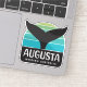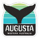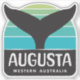 A bold, eye catching design celebrating Augusta, in the Great Southern Region of Western Australia. This artwork features a striking silhouette of a whale tail against vivid turquoise ocean background.