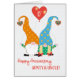 A fun wedding anniversary congratulations greeting card to customize for your Aunt and Uncle, with a couple of cute gnomes, based on the traditional 'little folk' of Scandinavian folklore. The male gnome is wearing an orange and yellow tall hat and yellow trousers which are almost hidden by his huge white beard. He is standing very close to the female gnome who is wearing a blue and yellow tall hat, a green and white polka dot dress and she has thick blond plaits or braids, tied with red bows. Both hats have a decorative heart, hanging from the pointed top and each one is holding a string to a heart-shaped red balloon, where you can add the number of years they've been together. The front cover greeting is 'Happy Anniversary' in an informal, red handwriting script and 'AUNT & UNCLE' in a more formal font, also in red. The white background has a lightly textured appearance. Please note: the word 'wedding' does not appear on this card so it is also suitable for life partners as well as married couples. The inside message is just a suggestion, which you can easily change or delete if you wish.