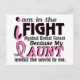You stand strong in the fight against Breast Cancer. You do it because there is a person in your life battling Breast Cancer who means the world to you. This incredible person is your aunt. Declare your commitment to fighting for this pillar of courage with I Am In The Fight Against Breast Cancer Because My Aunt Means The World To Me t-shirts, apparel, merchandise, and gifts featuring contrasting text fonts and a graffiti-style pink Breast Cancer awareness ribbon in a bold head-turning layout sure to grab attention as you support your aunt and spread the important message of Breast Cancer awareness.