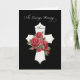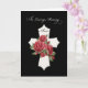 This elegant sympathy card serves as a heartfelt tribute to a beloved aunt. Featuring a white cross adorned with red roses, representing resurrection and eternal life, the design is set against a striking black background. The front reads, "In Loving Memory," offering a timeless expression of remembrance. Inside, a message of comfort and faith provides support to those mourning the loss of a cherished aunt.