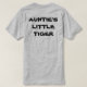 Tiger cub lying in wildflowers on the front of the t-shirt with the caption Aunti's Little Tiger on the back.