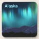 A multi-coloured, fractal rendering of the aurora borealis, or Northern Lights, superimposed on a digital painting of snow-covered mountains. Text reading "Alaska" appears in glowing blue and white. The aurora borealis (or Northern Lights), named after the Roman goddess of dawn, Aurora, and the Greek name for the north wind, Boreas. Many cultural groups have legends about the lights. In mediaeval times, the occurrences of auroral displays were seen as harbingers of war or famine. The Maori of New Zealand shared a belief with many northern people of Europe and North America that the lights were reflections from torches or campfires. The Menominee Indians of Wisconsin believed that the lights indicated the location of manabai'wok (giants) who were the spirits of great hunters and fishermen. The Inuit of Alaska believed that the lights were the spirits of the animals they hunted: the seals, salmon, deer and beluga whales. Other aboriginal peoples believed that the lights were the spirits of their people. The connection between the Northern Lights and sunspot activity was suspected as far back as 1880. Thanks to research conducted since the 1950's, we now know that electrons and protons from the sun are blown towards the earth on the 'solar wind'. (Note: 1957-58 was International Geophysical Year and the atmosphere was studied extensively with balloons, radar, rockets and satellites. Rocket research is still conducted by scientists at Poker Flats, a facility under the direction of the University of Alaska at Fairbanks. The temperature of the sun's atmosphere is millions of degrees. At this temperature, collisions between gas molecules are frequent and explosive. Free electrons and protons are thrown from the sun's atmosphere by the rotation of the sun and escape through holes in the magnetic field. carried eartward in the solar wind, the charged particles are largely deflected by the earth's magnetic field. However, the earth's magnetic field is weaker at either pole and therefore some particles enter the earth's atmosphere and collide with gas particles in the higher layers (thermosphere). These collisions emit light that we perceive as the dancing lights of the north (and the south). Most aurorae occur in a band known as the auroral zone,which is typically 3° to 6° in latitudinal extent and at all local times or longitudes. The auroral zone is typically 10° to 20° from the magnetic pole defined by the axis of the Earth's magnetic dipole. During a geomagnetic storm, the auroral zone will expand to lower latitudes. The diffuse aurora is a featureless glow in the sky which may not be visible to the unaided eye even on a dark night and defines the extent of the auroral zone. The discrete aurora are sharply defined features within the diffuse aurora which vary in brightness from just barely visible to the unaided eye to bright enough to read a newspaper at night. Discrete aurorae are usually observed only in the night sky because they are as bright as the sunlit sky. Aurorae occasionally occur poleward of the auroral zone as diffuse patches or arcs (polar cap arcs, which are generally invisible to the unaided eye. Because the phenomena occurs near the magnetic poles, northern lights have been seen as far south as New Orleans in the western hemisphere, while similar locations in the east never experience the mysterious lights. However the best places to watch the lights (in North America) are in the northwestern parts of Canada, particularly the Yukon, Nunavut, Northwest Territories and Alaska. Auroral displays can also be seen over the southern tip of Greenland and Iceland, the northern coast of Norway and over the coastal waters north of Siberia. Southern auroras are not often seen as they are concentrated in a ring around Antarctica and the southern Indian Ocean. Auroral displays appear in many colours. Variations in colour are due to the type of gas particles that are colliding. The most common auroral colour, a pale yellowish-green, is produced by oxygen molecules located about 60 miles above the earth. Rare, all-red auroras are produced by high-altitude oxygen, at heights of up to 200 miles. Nitrogen produces blue or purplish-red aurora. The lights appear in many forms from patches or scattered clouds of light to streamers, arcs, rippling curtains or shooting rays that light up the sky with an eerie glow. Curtain-like structures show field lines in the Earth's magnetic field . The auroras that resulted from the "great geomagnetic storm" on both 28 August and 2 September 1859 are thought the most spectacular in recent recorded history. It was reported by the New York Times that in Boston on Friday 2 September 1859 the aurora was "so brilliant that at about one o'clock ordinary print could be read by the light". The aurora is thought to have been produced by one of the most intense coronal mass ejections in history, very near the maximum intensity that the Sun is thought to be capable of producing. It is also noteable for the fact that it is the first time where the phenomena of auroral activity and electricity were unambiguously linked. This insight was made possible not only due to scientific magnetometer measurements of the era, but also as a result of a significant portion of the 125,000 miles (201,000 km) of telegraph lines then in service being significantly disrupted for many hours throughout the storm. Some telegraph lines, however, seem to have been of the appropriate length and orientation to produce a sufficient geomagnetically induced current from the electromagnetic field to allow for continued communication with the telegraph operator power supplies switched off. Both Jupiter and Saturn have magnetic fields much stronger than Earth's (Jupiter's equatorial field strength is 4.3 gauss, compared to 0.3 gauss for Earth), and both have large radiation belts. Auroras have been observed on both, most clearly with the Hubble Space Telescope. Uranus and Neptune have also been observ