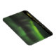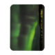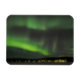 Rectangular photo magnet with green rays of aurora borealis (northern lights) in the night sky over a frozen lake in Lapland.