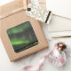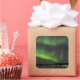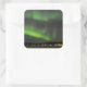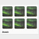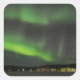 Sticker with green rays of aurora borealis (northern lights) in the night sky over a frozen lake in Lapland.