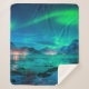 Aurora borealis over the sea coast, snowy mountain sherpa blanket
