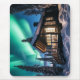 Nice mousepad with beautiful Aurora borealis over winter cabin.