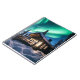 Nice notebook with beautiful Aurora borealis over winter cabin.