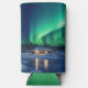 Aurora borealis over winter cabin seltzer can cooler