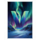 Bring sweeping northern beauty into your space with this Aurora Letter V wall art. A glowing letter V hovers above a frozen mountain valley, illuminated by flowing ribbons of Northern Lights in rich shades of turquoise, emerald, and soft violet. Snow-covered cliffs rise along both sides of an icy river below, reflecting soft aurora light and creating a peaceful, expansive winter landscape.