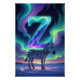 Bring bold, magical winter beauty into your space with this Aurora Letter Z wall art. A glowing letter Z rises from a snow-covered landscape, illuminated by flowing ribbons of Northern Lights in radiant shades of turquoise, emerald, and soft violet. A striking zebra stands in the foreground, its black-and-white stripes creating a beautiful contrast against the glowing snow and celestial night sky.