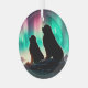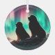 Two beautiful Newfoundland dogs silhouetted against the stunning Aurora Borealis/Northern Lights.